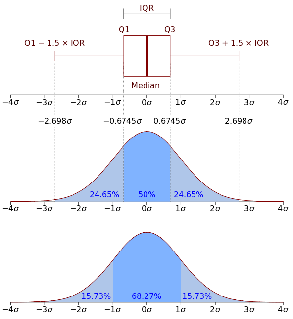 The interquartile range, often abbreviated iqr, is the difference between the 25th percentile (q1) and the 75th percentile (q3) in a dataset.